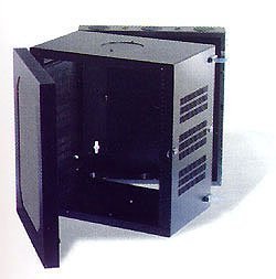 APW's MINI MAX Wall Mount Enclosures are aptly named for their ability to store a MAXimum amount of equipment in a MINImum amount of space. These convenient and flexible rack-mount enclosures organize and secure critical network wiring, hubs, concentrators, patch panels, and audio/video equipment. Constructed from 14- and 16-gauge steel, these heavy-duty units can hold up to 150lbs of equipment. Enclosures come with cable access ports, heavy-duty steel hinges, dual key locks, and optional 250 CFM Exhaust Fan. Features: Heavy-duty steel hinges. Plexiglas front door allows convient monitoring of installed equipment. Vented side for additional cooling. 19in mounting rails are both 10-32 and 12-24 tapped and meet EIA-310 standards. Rails are field reversible, adjusting front to back (Two rails are included). Three cable access ports are located on the top and bottom of enclosure. Dual key locks on the front and rear of enclosure. Available with an array of additional accessories, such as shelving, cable management, power, and fan cooling options. Wall mounting hardware not included.